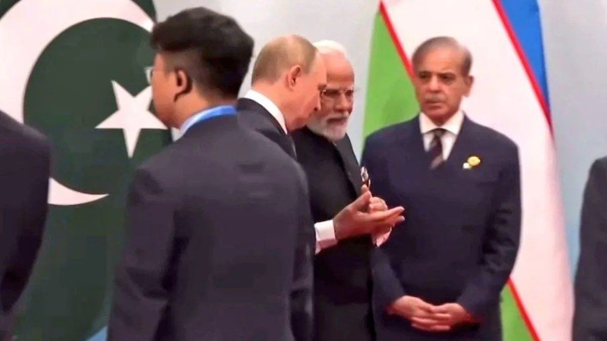 SCO Summit: मुंह ताकते रह गए शहबाज शरीफ, जब सामने से निकल गए PM Modi और पुतिन– देखें वीडियो